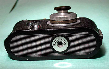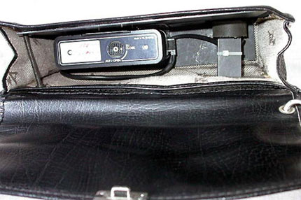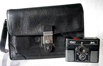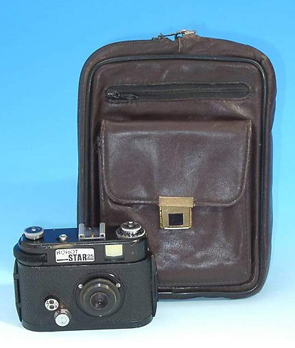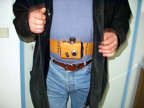 Eine Handgelenktasche mit Robot Star 50. Hier wurde ein Spezialobjektiv von Schneider Kreuznach, das so genannte Beamten-Objektiv, ein Xenagon 30 mm, Festbrennweite von 4.