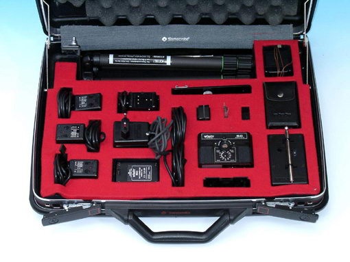 Auch der ROBOT SC 35 electronic wurde vom MfS wurde eingesetzt, hier die komplette Ausrüstung, die damals DM 17.000 gekostet hat. Die Kamera hat ein Negativformat von 16 x 16 mm auf Kleinbildfilm, benutzt aber spezielle Kassetten, um die Kameradicke gering zu halten.